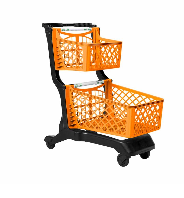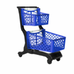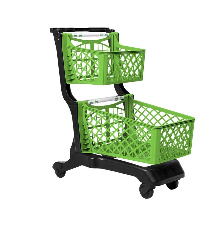 É leve, resistente e fácil de manusear. Ideal para supermercados, hortifrutis e lojas, possui estrutura durável que suporta peso sem deformar. Seu material facilita a limpeza e garante higiene. É prático, silencioso e oferece boa mobilidade para transportar compras com conforto e segurança.