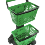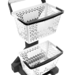 Especificações Modelo: Carrinho 2 Cestos Capacidade: 24 kg (12 kg por cesto) Medidas: C 56 X L 56 X A 101 cm
