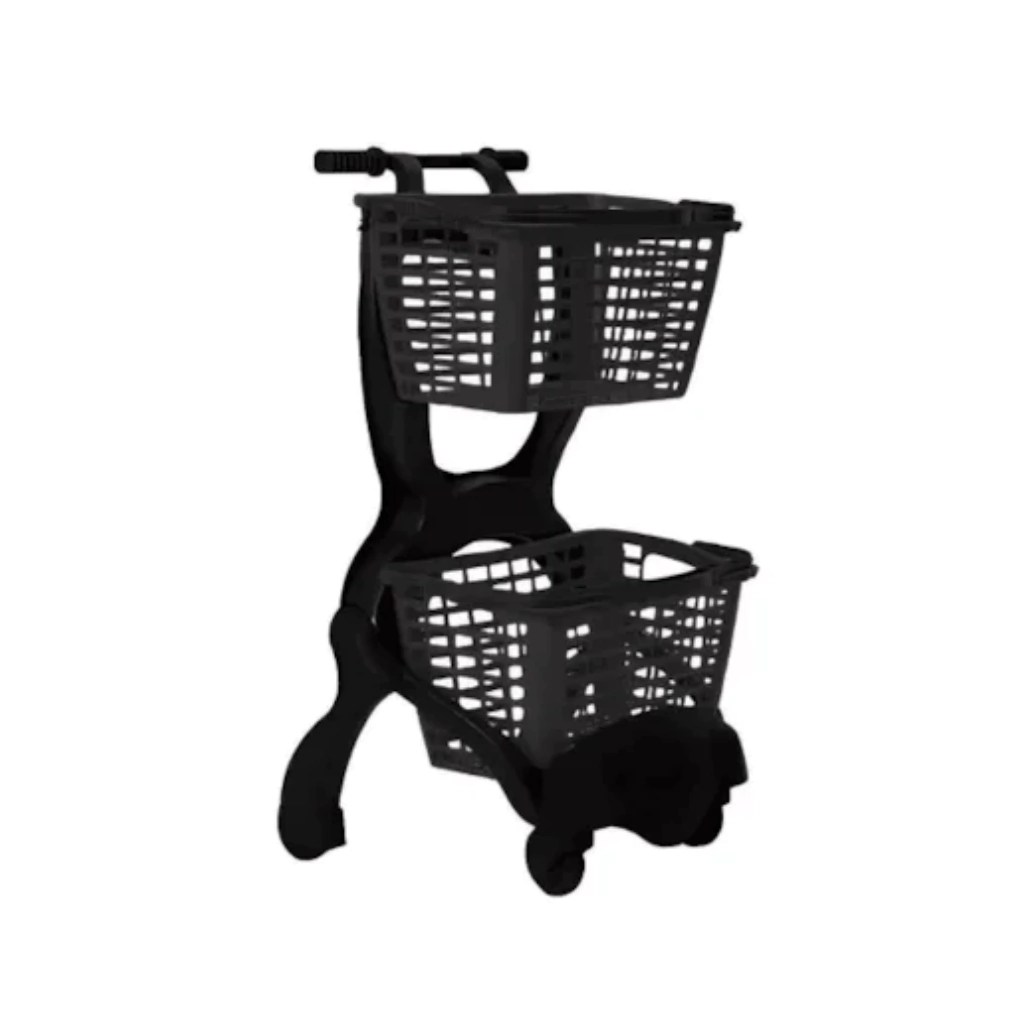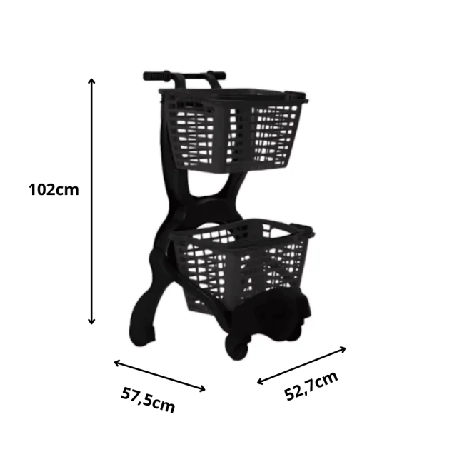 É leve, resistente e fácil de manusear. Ideal para supermercados, hortifrutis e lojas, possui estrutura durável que suporta peso sem deformar. Seu material facilita a limpeza e garante higiene. É prático, silencioso e oferece boa mobilidade para transportar compras com conforto e segurança.