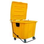 Diferenciais » Fabricados em PEAD ou PEMD, em máquinas de alta tecnologia; Resistentes ao impacto e à tração; Possui proteção contra raios UV e aditivo antioxidante; Rodas de borracha maciça com núcleo em Polipropileno; Atende as normas UNE EN840 e e ABNT NBR 15911-3. Aplicações » Coleta seletiva e urbana; Condomínios e shoppings; Resíduos industriais e hospitalares.