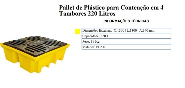 Informações Pallet de Contenção 4 Tambores 220 Litros