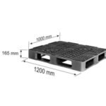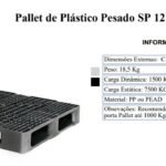 INFORMAÇÕES TÉCNICAS Dimensões Externas: C:1200 | L:1000 | A:165 | mm Peso: 18,5 Kg Carga Dinâmica: 1500 KG Carga Estática: 7500 KG Material: PP ou PEAD Obsevações: Recomendado para câmara frias - Indicado para porta Pallet até 1000 Kg